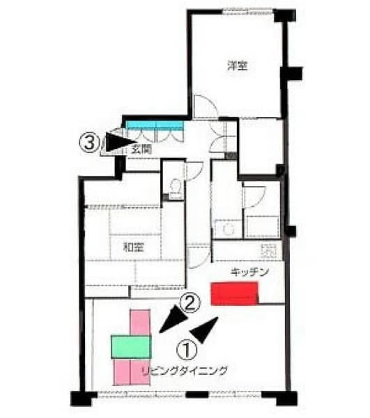 1. キッチンカウンターを使い易くしたい。(ワゴンを併用している為扉があけにくく、キッチン内が煩雑)