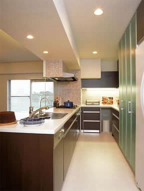 After コメント&データ Comments & data 施主コメント リフォームの目的と要望 施主はご夫婦と男の子(中学生)2人の4人家族。子どもの成長に伴い、より広い住戸を購入して、住み替えることに。子ども室はそれぞれ確保したいが、子どもの帰宅に気づかない間取りはイヤ。キッチンは家族の顔が見える対面式を希望。将来お菓子教室を開く夢もある。 施工会社コメント プランのポイント、工夫した点 思春期のお子様の部屋はLDKと分断されないように、玄関からキッチンを一直線上に配し、行き来し易い動線を確保した。開口部は壁面パネル状にデザインした吊引戸と日常は開放してキッチンから玄関の気配がわかるようにした。LDを見渡せる対面キッチンのカウンターをRに広げ、将来生徒さんと囲んで作業出来るようにした。 BEFORE AFTER DATA リフォーム部位 子供の成長 中古購入、相続・継承 キッチン Kitchen リフォームの動機・目的 子供の成長 中古購入、相続・継承 キッチン Kitchen 実例の所在地 東京都 築後年数 20年 リフォーム費用 450万円(税抜き) リフォーム工事期間 約2ヶ月