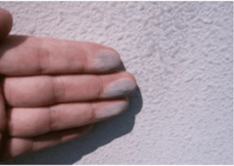 既存塗膜の表面側の劣化現象は、塗膜が連続性を保っている限り、下地保護機能は維持している状態と言えます。ただし、表層側から劣化が始まっているため、外壁塗装時期が近づいてきたサインともいえる現象です。