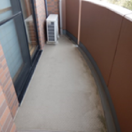 必要性能として使用時の防滑性や防水性、雨水滞留がない事、汚れにくい形状や掃除のし易さが求められます。似たものにベランダがありますが、これは屋根がない外部床になります。