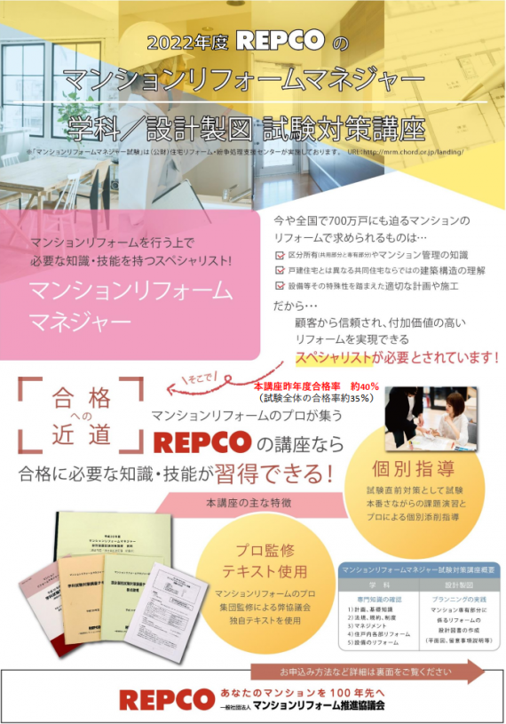 今年もオンライン(ZOOMウェビナー)で開催、合格に必要な重要ポイントの解説をマンションリフォームのプロ集団監修による独自テキストで行います。