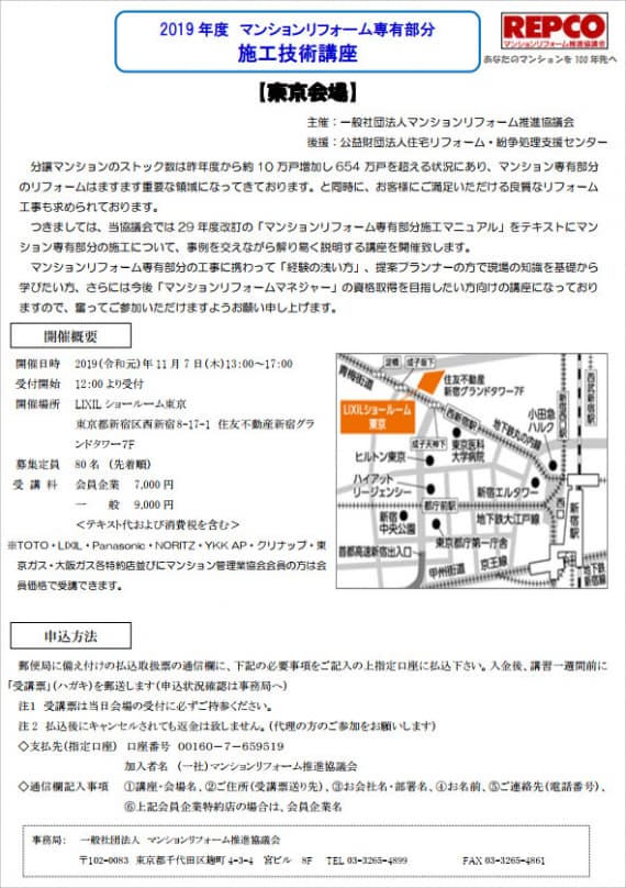 2019年度 マンションリフォーム専有部分 施工技術講座